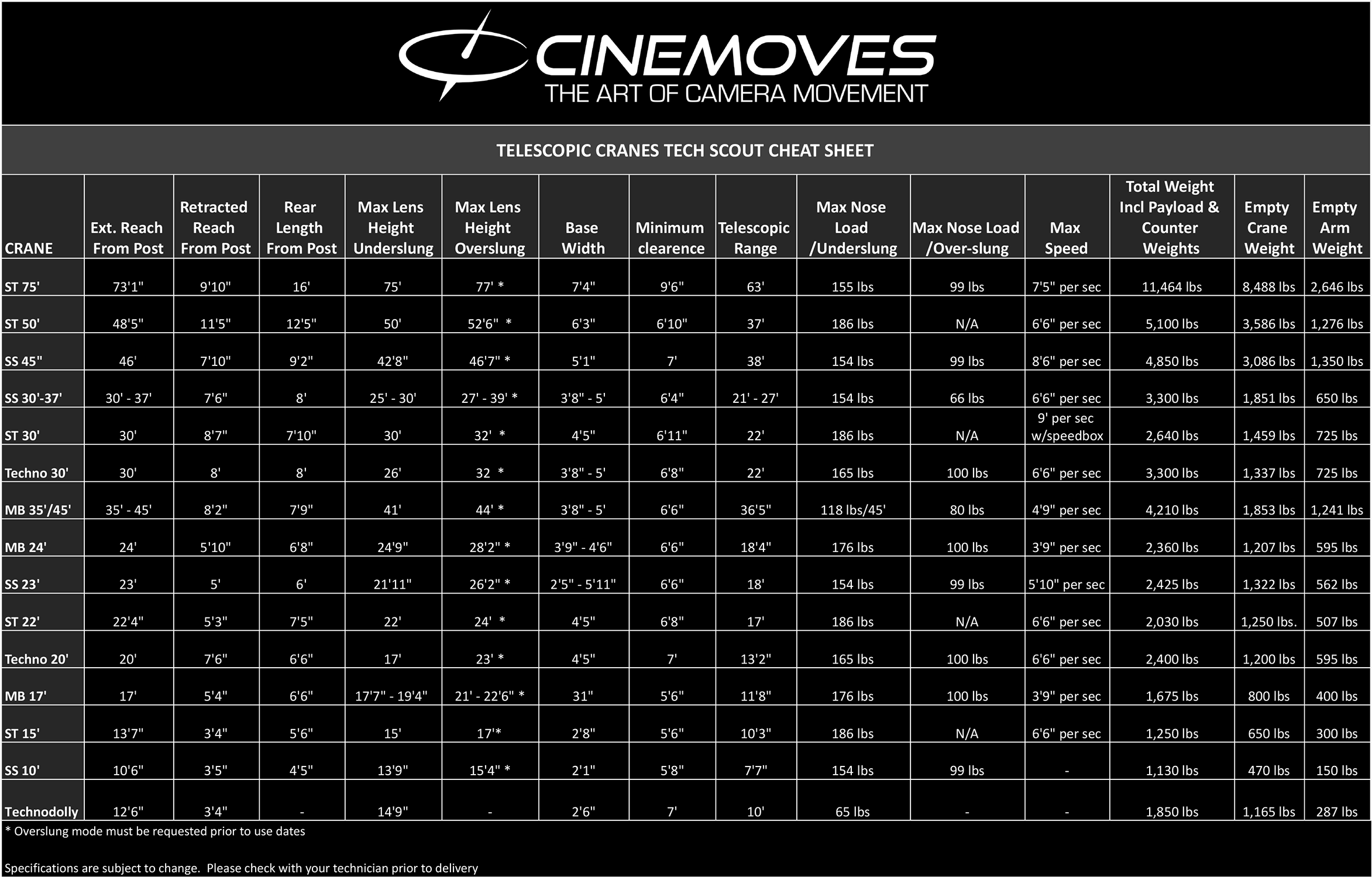 TELESCOPIC CRANES TECH SCOUT CHEAT SHEET